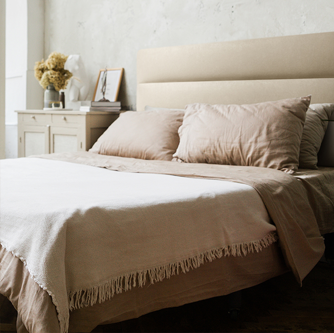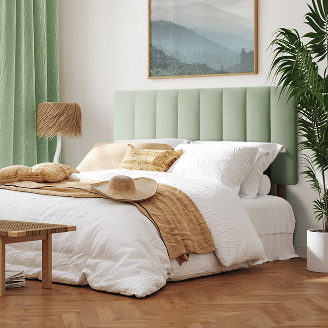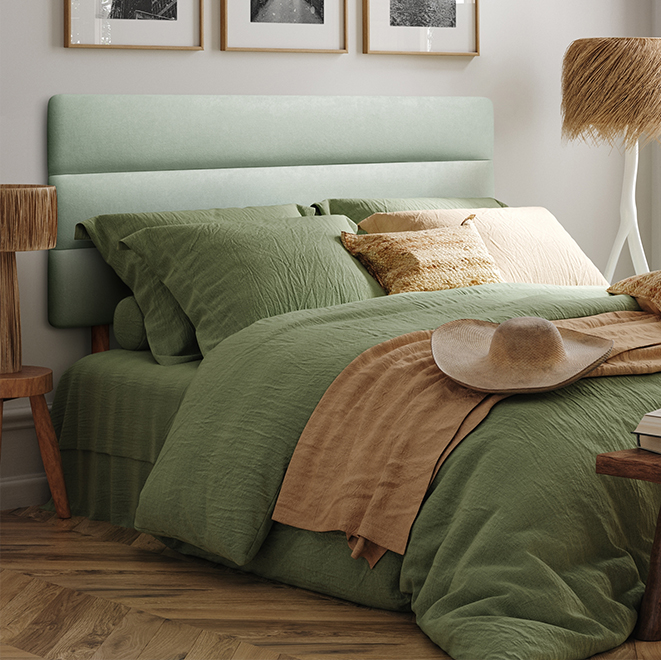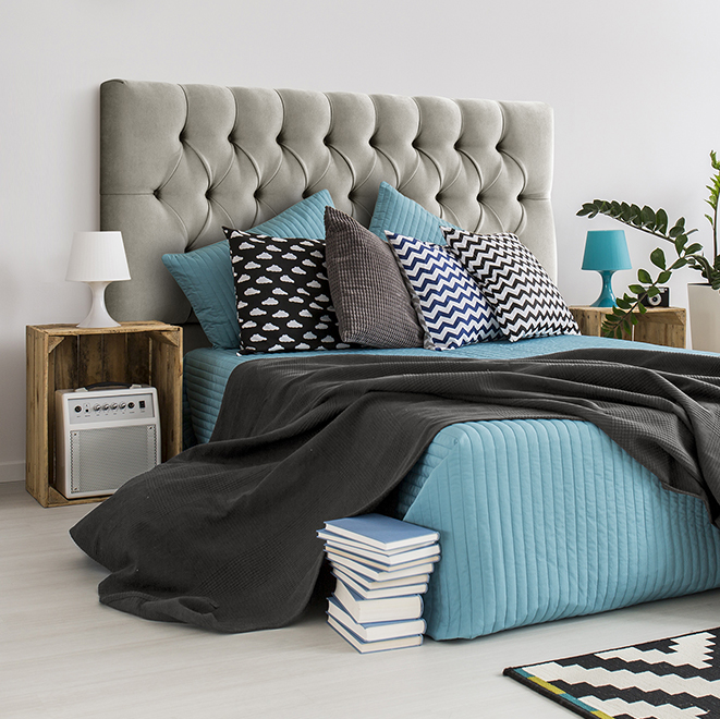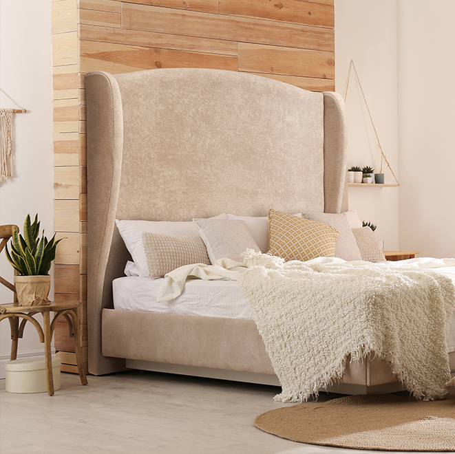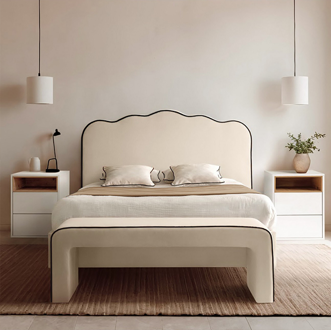Firme y elegante cama francesa tapizada en tela antimanchas,...