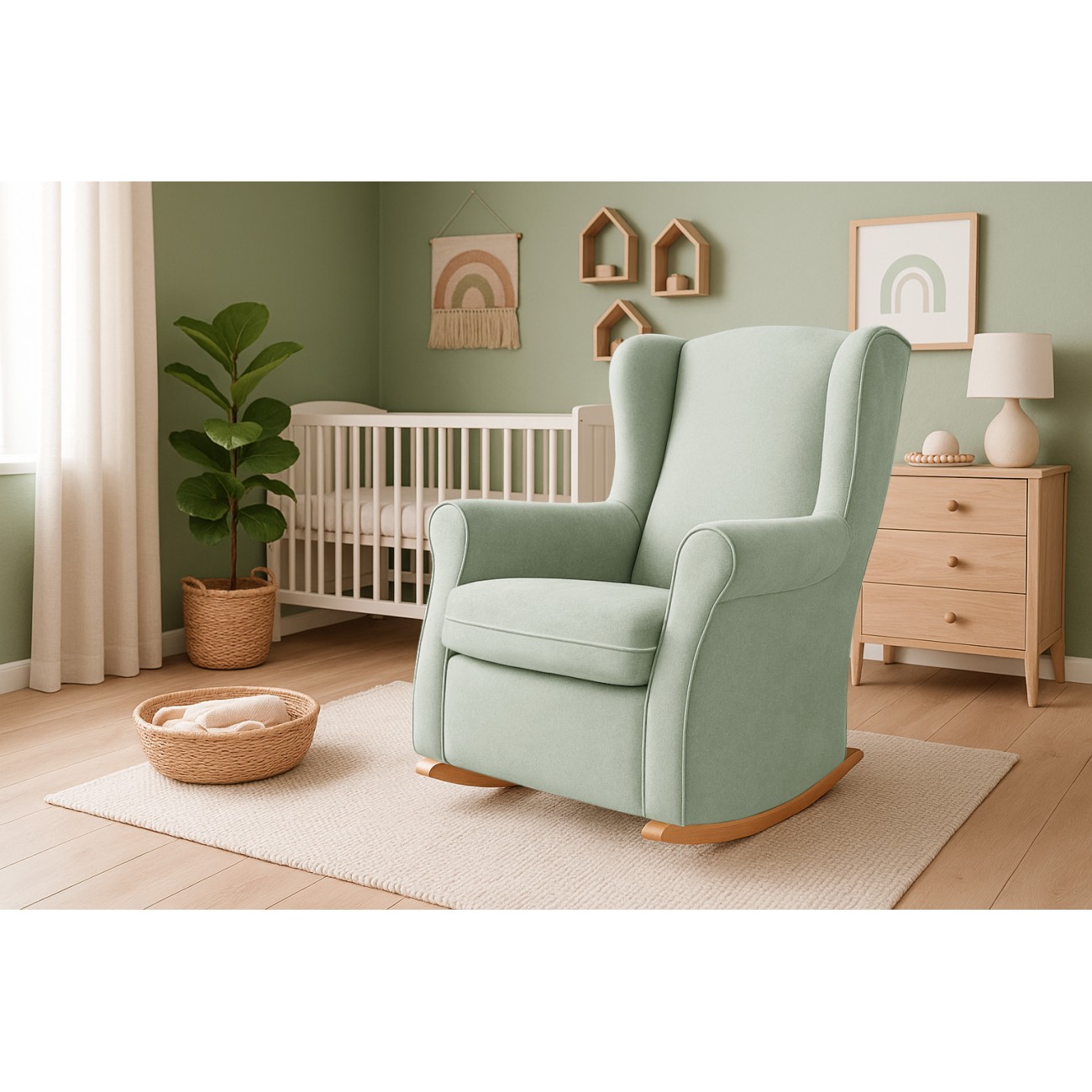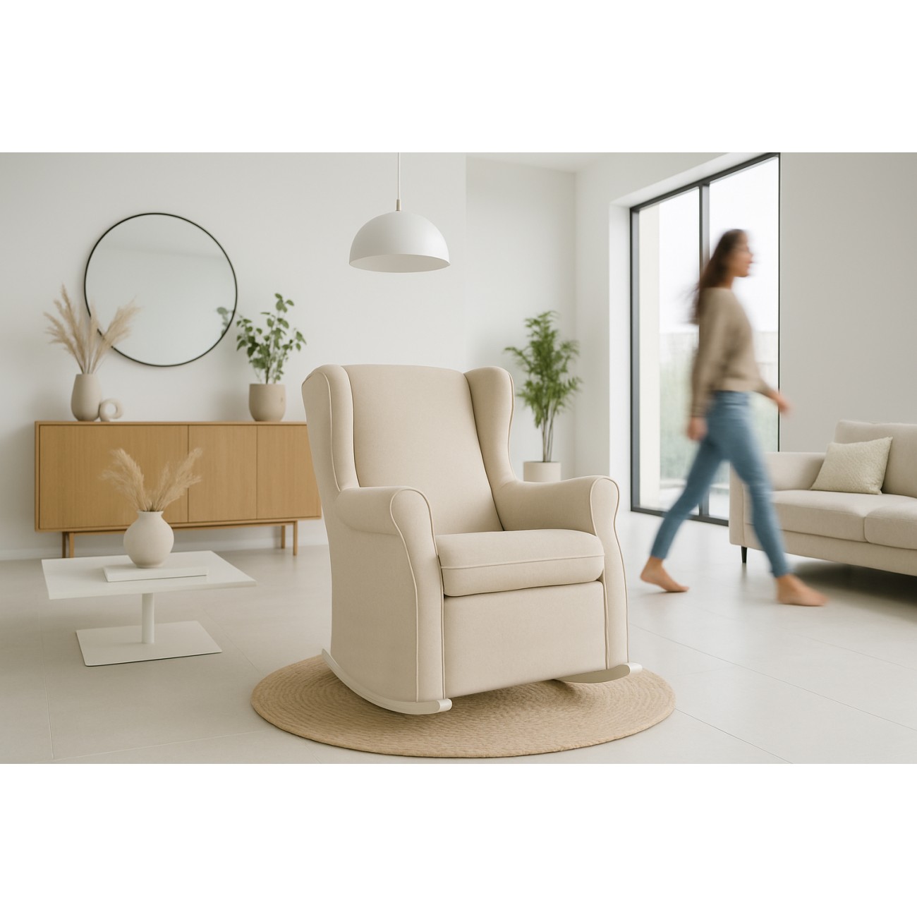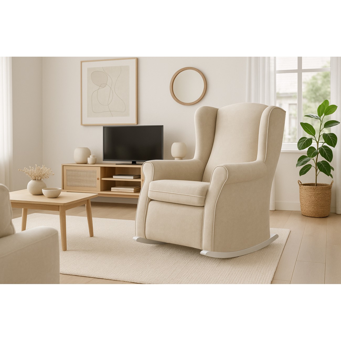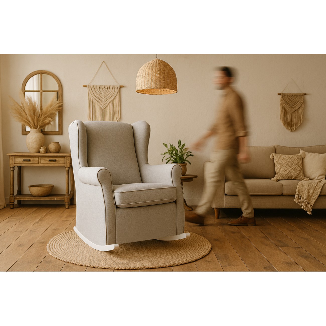 Sillón balancín orejero Elena. Ideal para lactancia. Tapizado en...