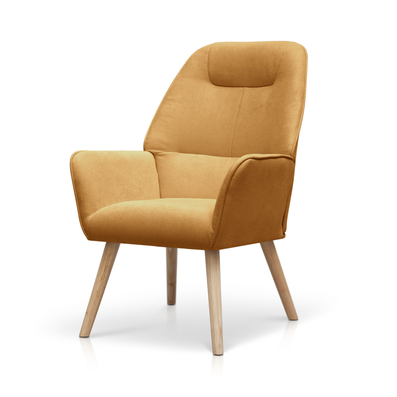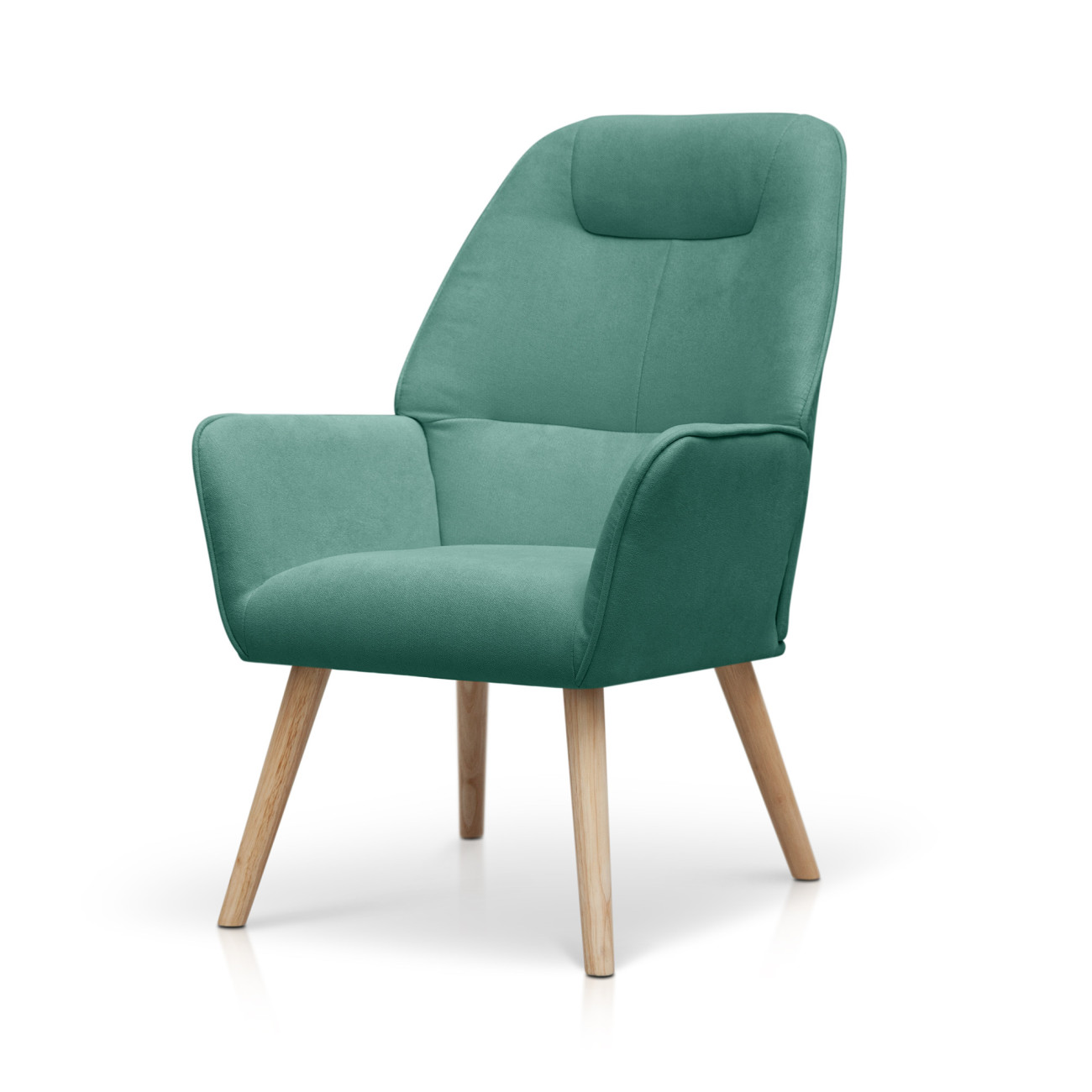 Butaca sillón orejero Dulce con patas nórdicas de madera de haya...