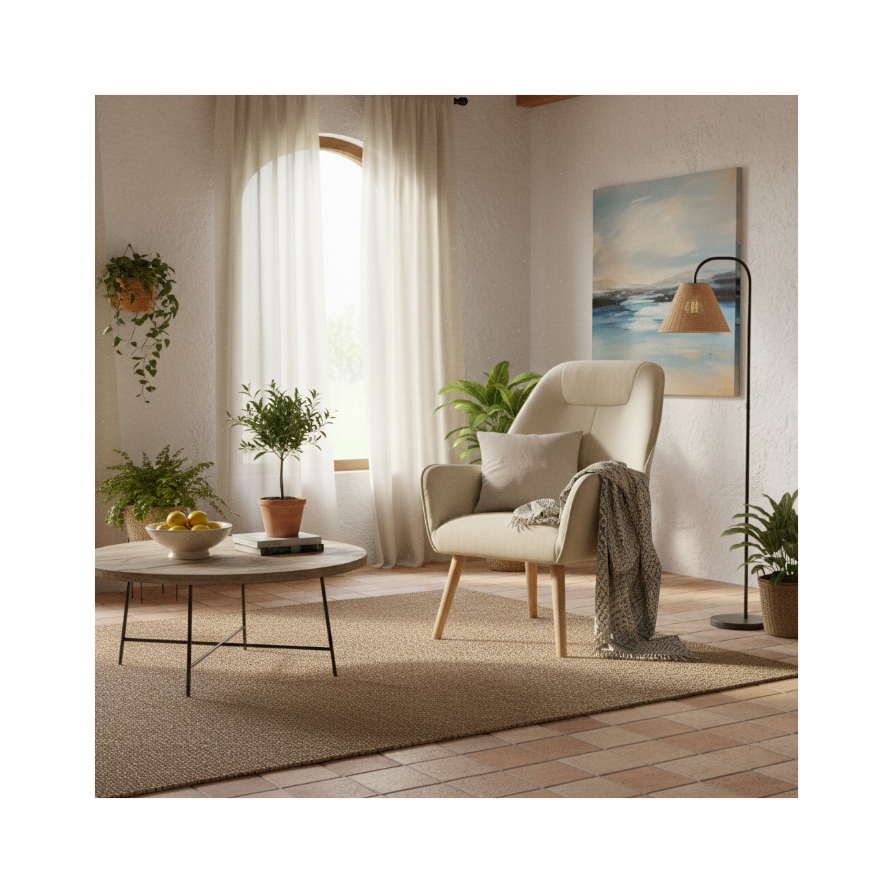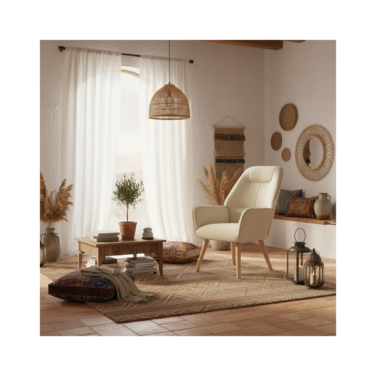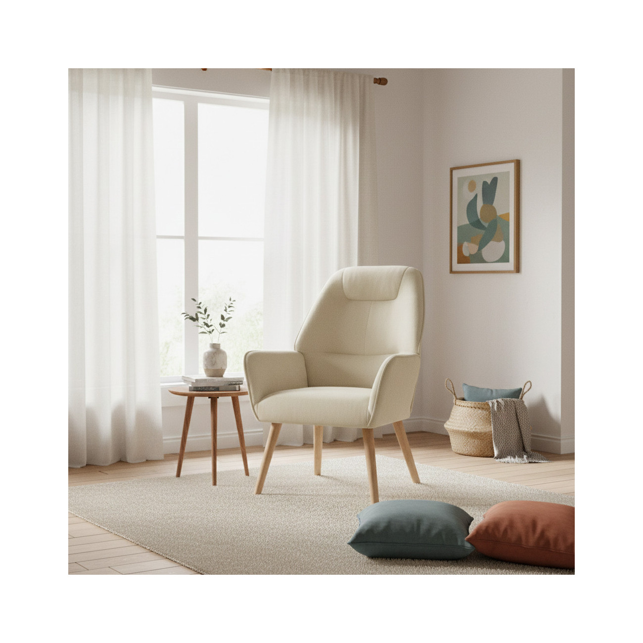Pensada para hogares reales, esta butaca está tapizada en un tejido técnico anti-manchas de alta calidad. Está disponible en una exclusiva gama de 7 colores pastel (incluyendo beige, salmón, agua, turquesa y grises), que permiten una limpieza sencilla sin renunciar a la suavidad y calidez de un tejido premium. Su acabado mate y tonos suaves facilitan la integración en cualquier estilo decorativo.
