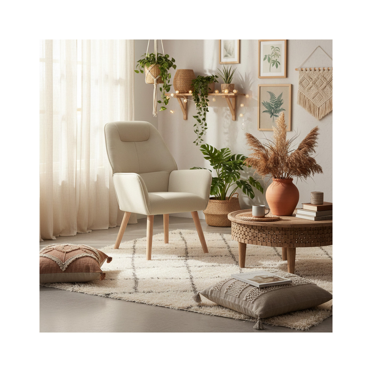 La Butaca Telmo es la solución ideal para quienes buscan un equilibrio entre diseño nórdico y practicidad absoluta. Gracias a su respaldo alto de diseño ergonómico, con un detalle de costura horizontal que refuerza el apoyo lumbar, ofrece una sentada envolvente perfecta para largos periodos de lectura o descanso.