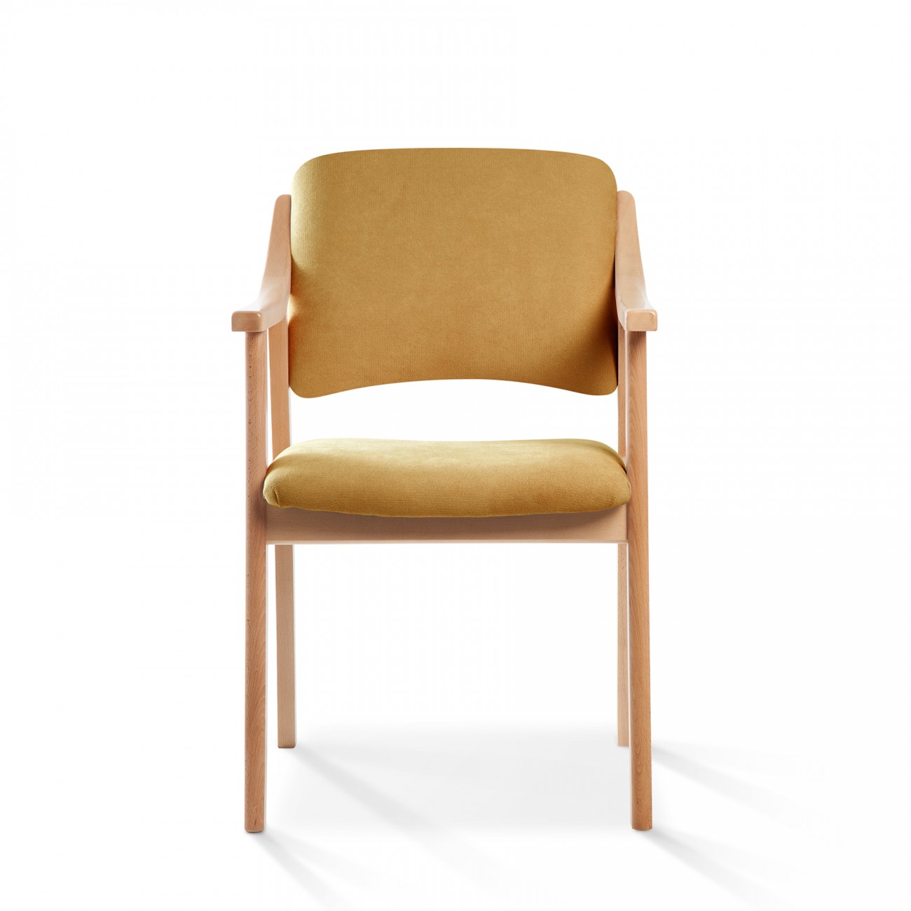 Silla con armazón de madera de haya barnizada, asiento y respaldo acolchados y tapizados en tela antimanchas de fácil limpieza.