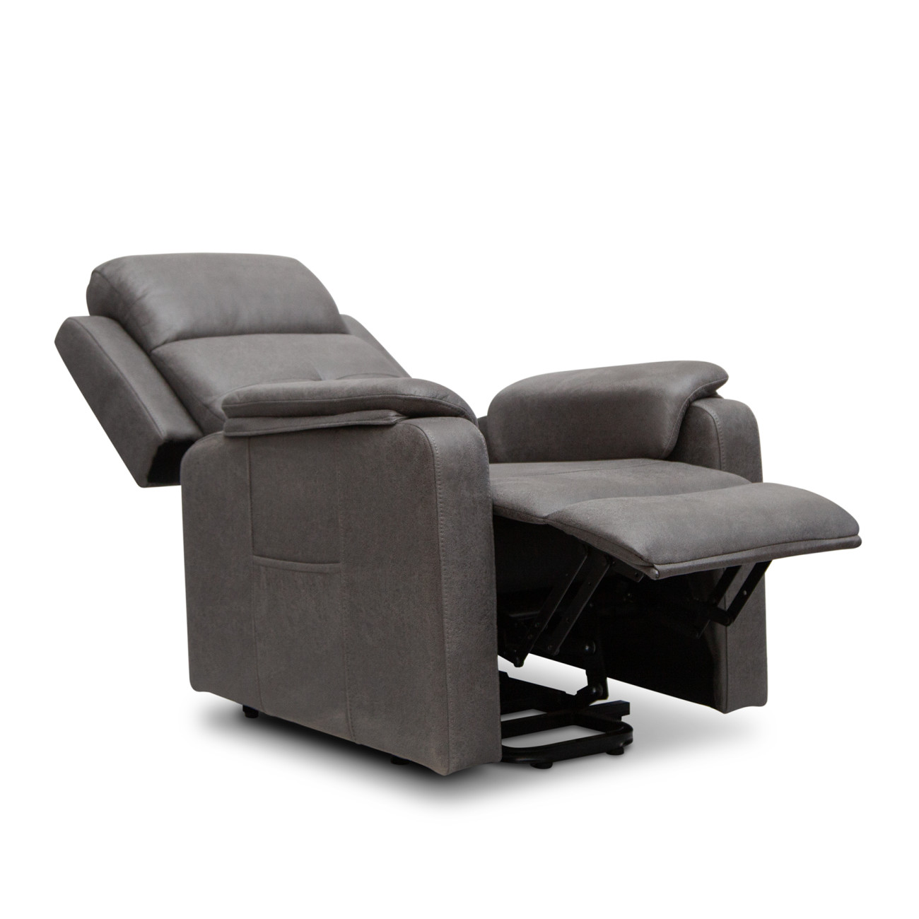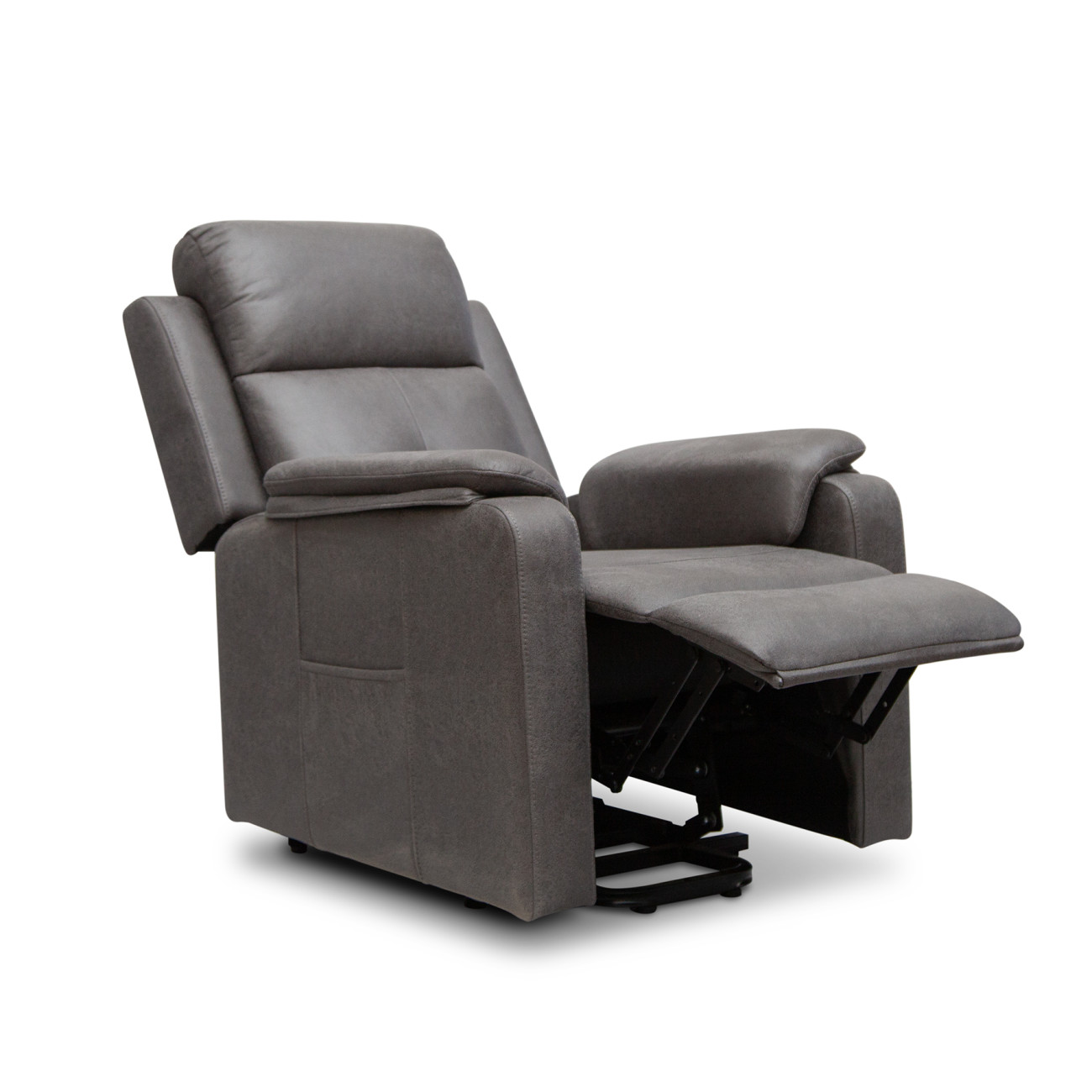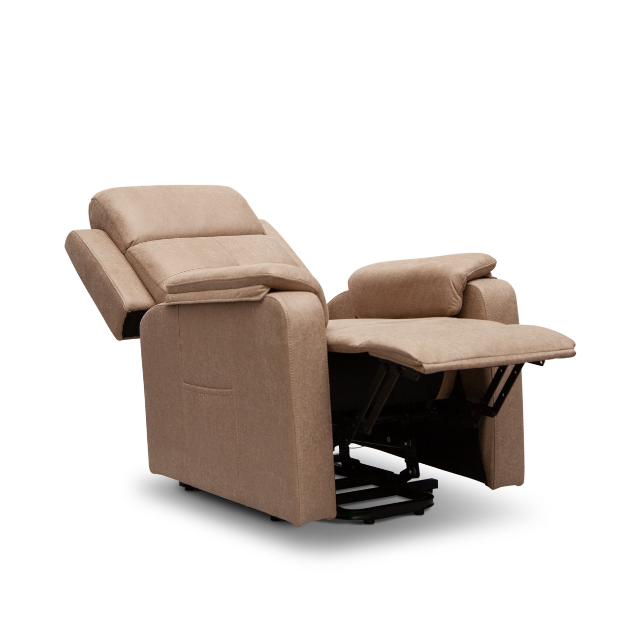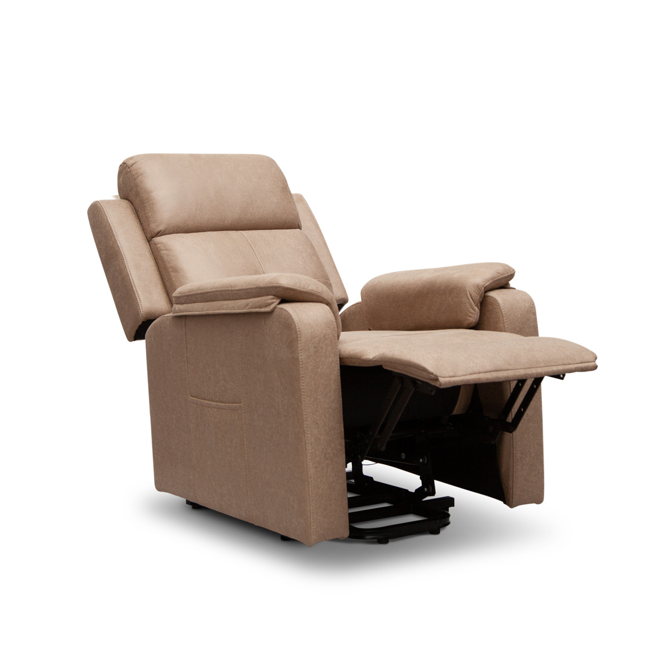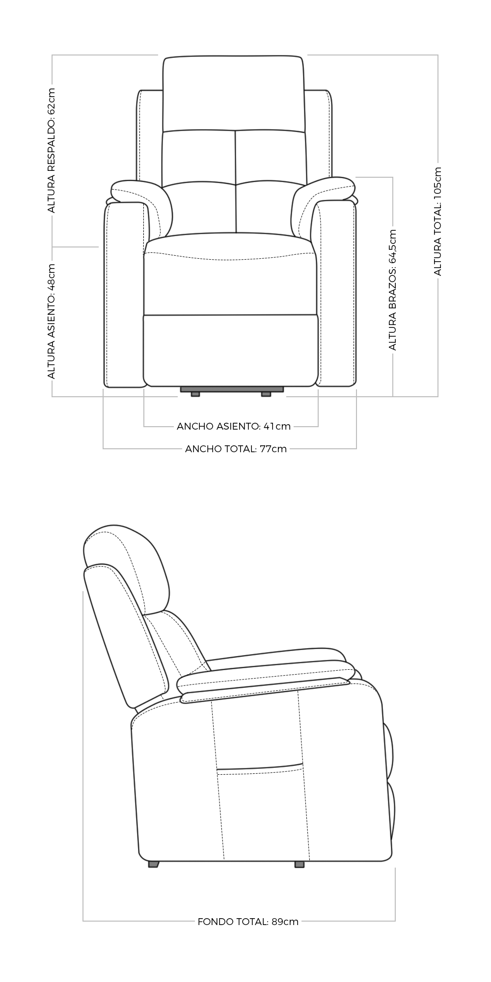 Sillón reclinable con sistema eléctrico a motor con elevación hidráulica levanta personas accionado por mando a distancia de dos botones. Fabricado sobre una robusta estructura, acolchada en espumación HR y tapizado en tela de fácil limpieza.