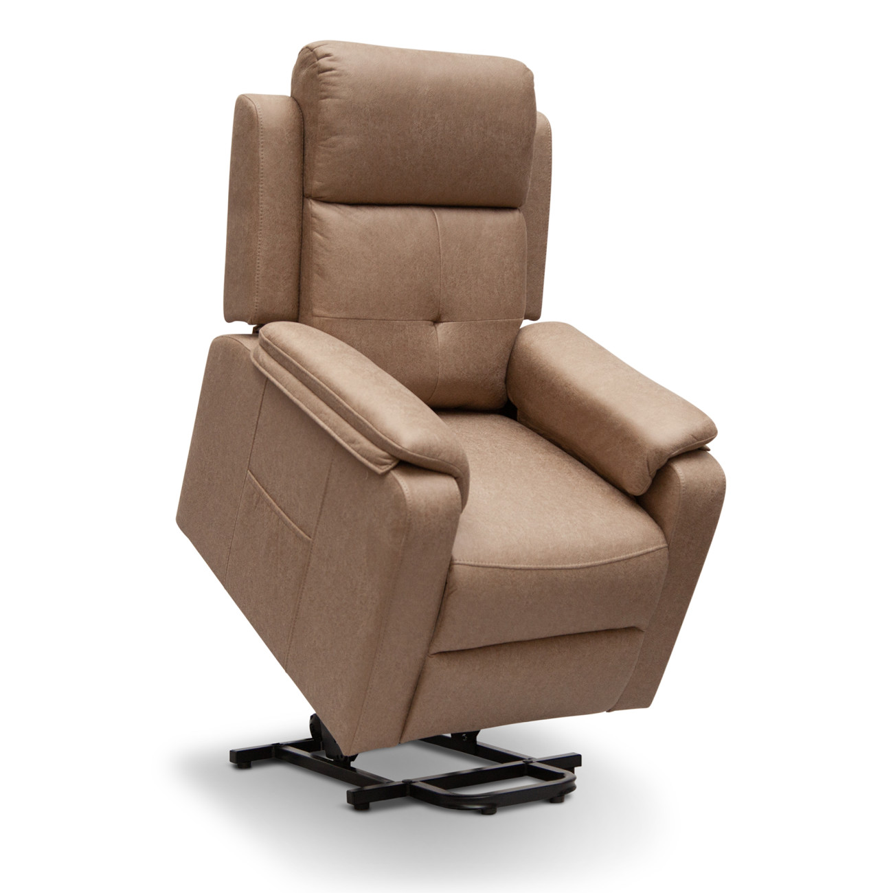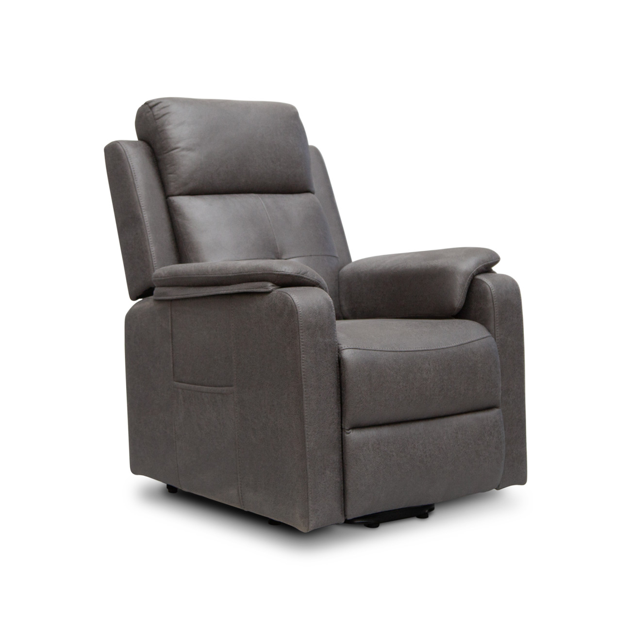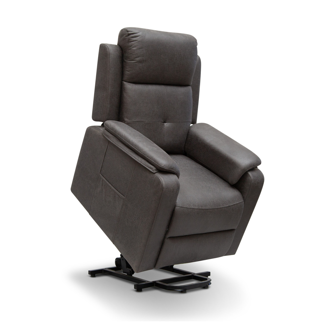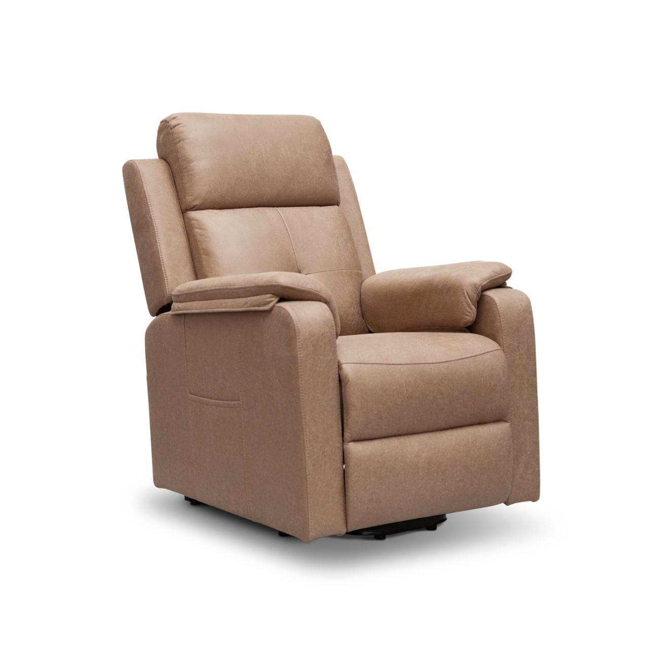 Sillón reclinable con sistema eléctrico a motor con elevación hidráulica levanta personas accionado por mando a distancia de dos botones. Fabricado sobre una robusta estructura, acolchada en espumación HR y tapizado en tela de fácil limpieza.