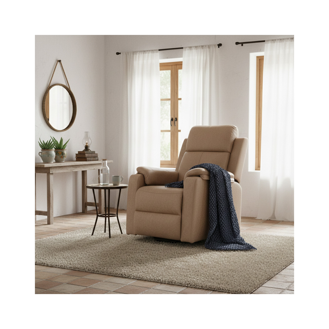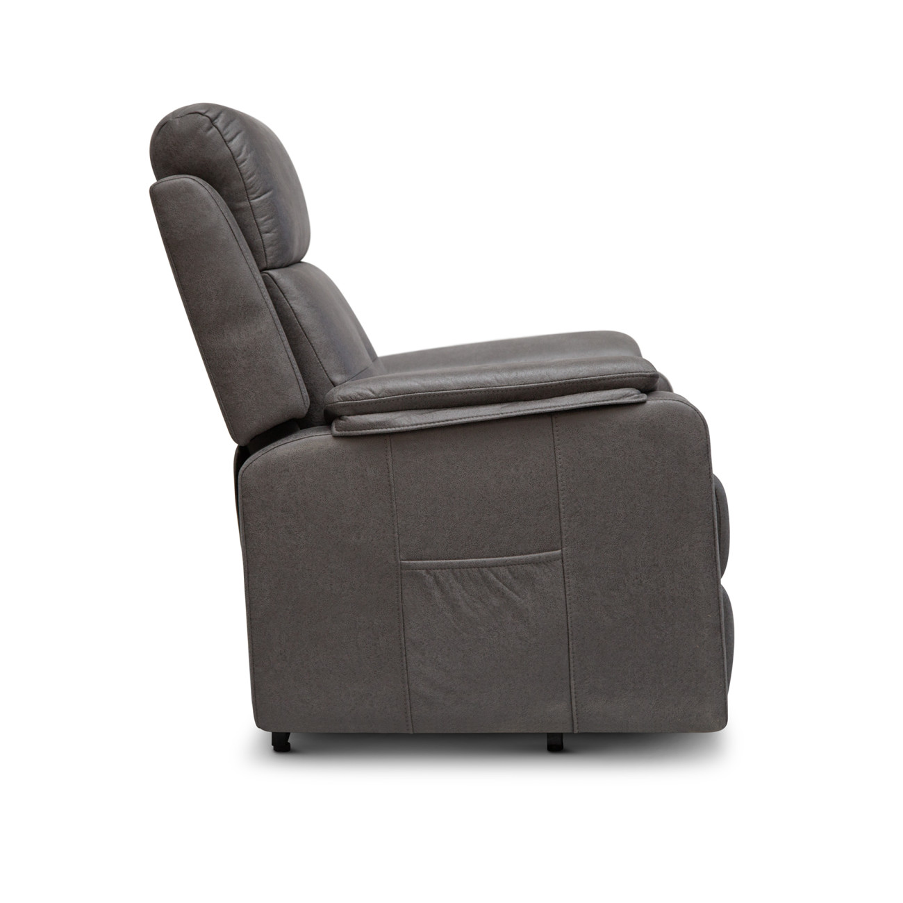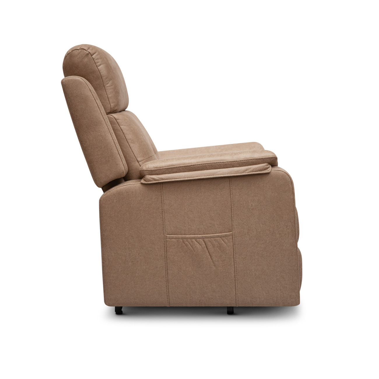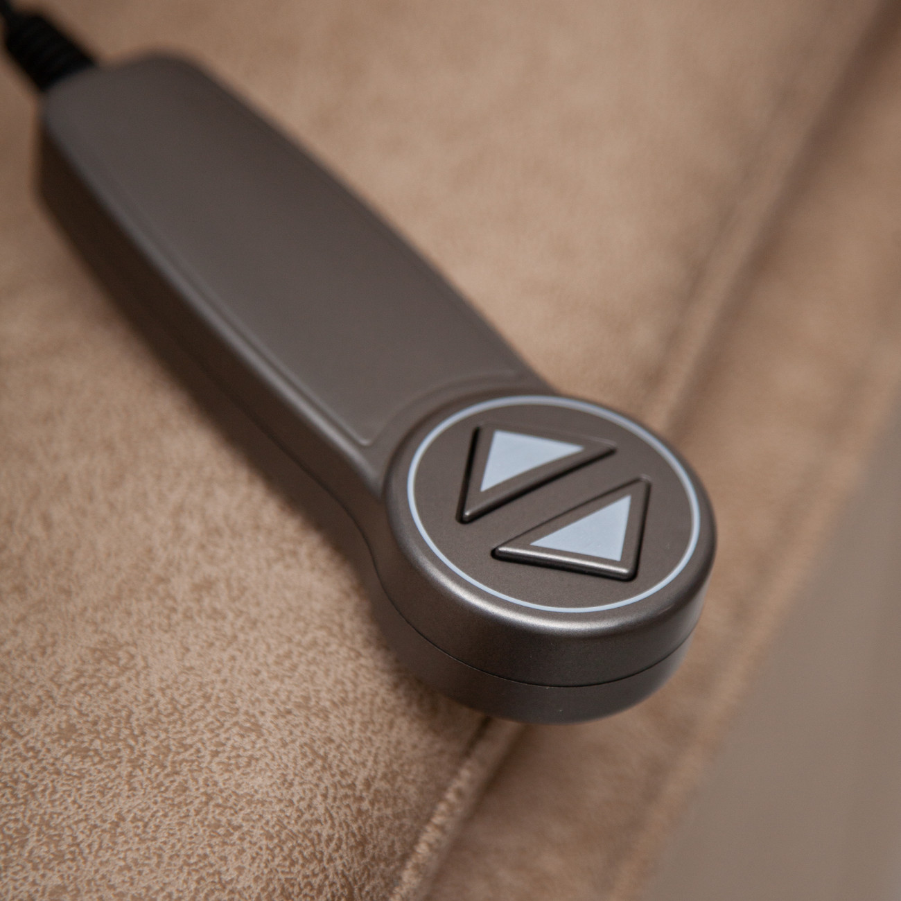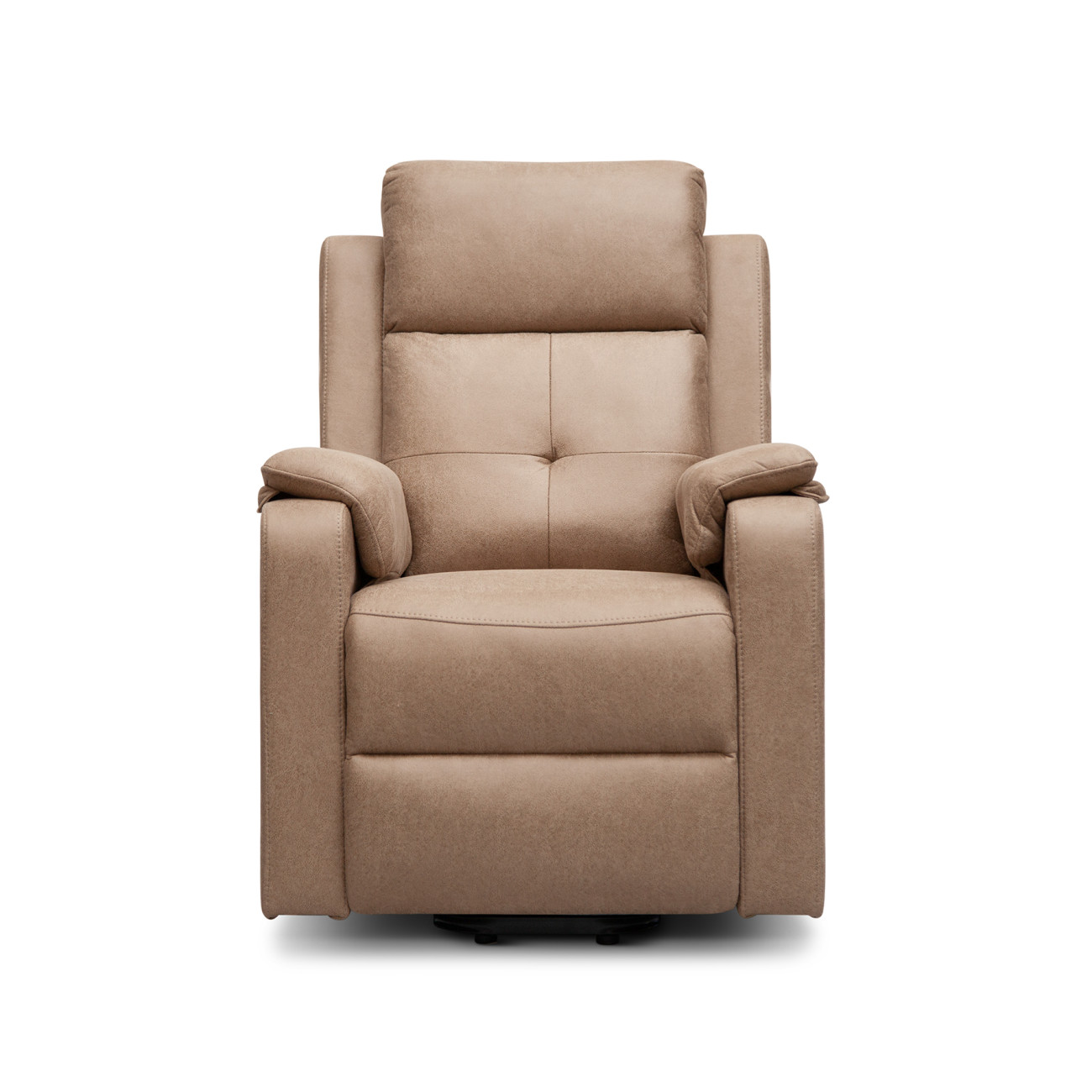 Sillón reclinable con sistema eléctrico a motor con elevación hidráulica levanta personas accionado por mando a distancia de dos botones. Fabricado sobre una robusta estructura, acolchada en espumación HR y tapizado en tela de fácil limpieza.